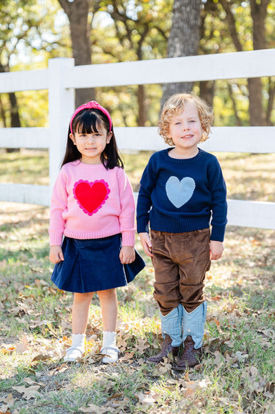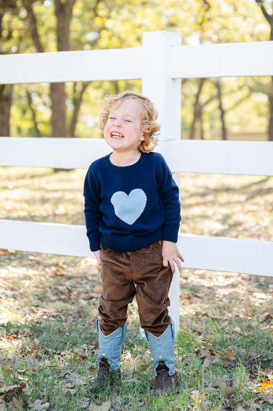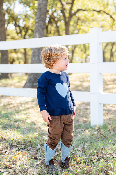 The Blue Heart Sweater for Boys is a sweet and versatile piece for your little one. Made from 100% knit cotton, this dark blue sweater features a light blue heart at the center, making it perfect for Valentine’s Day, parties, school events, or everyday wear.