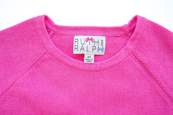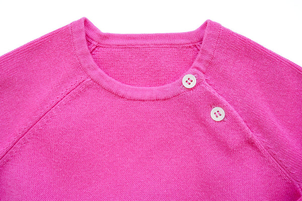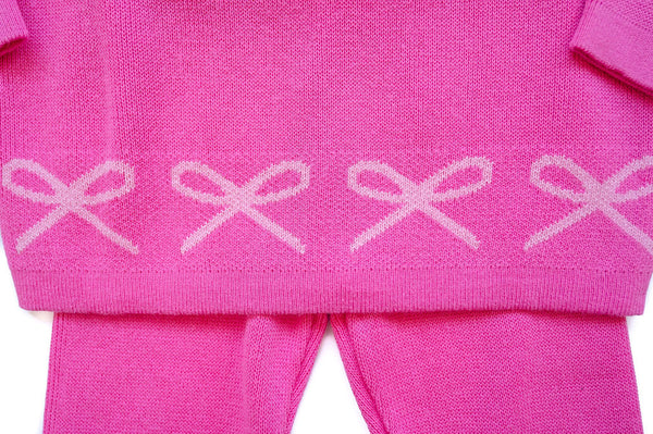A sweet and stylish set for your little girl! This 2-Piece Pink Bow Sweater Set is perfect for fall and winter, whether for playtime or special events. The bright pink sweater features light pink bows lining the bottom of the sweater, adding a charming finishing touch, and pairs with coordinating bottoms for a complete look. Sizes 0/6M and 6/12M include convenient buttons at the neck for easy dressing, while larger sizes do not.
