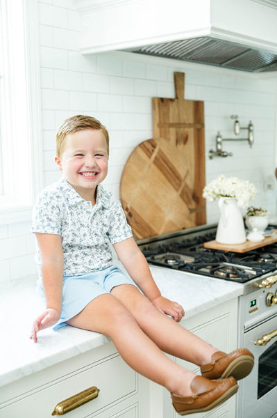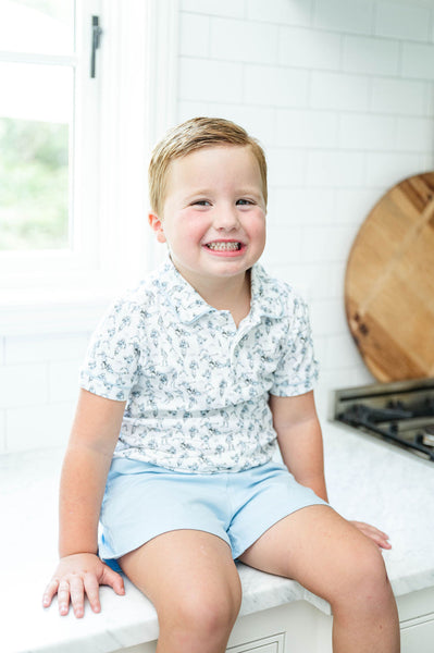 Get your little one ready for game day with our Football Player Print Pima Cotton Outfits! Made from 100% soft pima cotton, these stylish outfits feature a football player print in light blue, perfect for showing off his love for the game. The boy's polo set comes with solid light blue shorts, combining comfort and style in one. These outfits are a must-have for tailgates, game days, or any occasion that calls for a little extra team spirit.