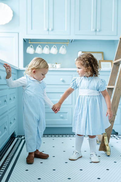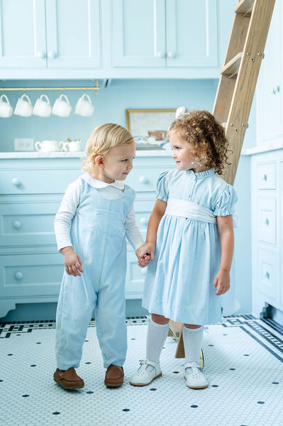 A classic holiday look for your little one. Our Blue Velvet Holiday Longall is crafted from luxuriously soft 100% cotton velvet in a beautiful light blue shade, perfect for festive occasions. This timeless piece offers a polished yet comfortable fit for babies and toddlers.
