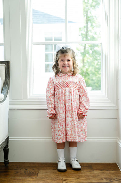Christmas Tiles Smocked Pima Cotton Libby Dress