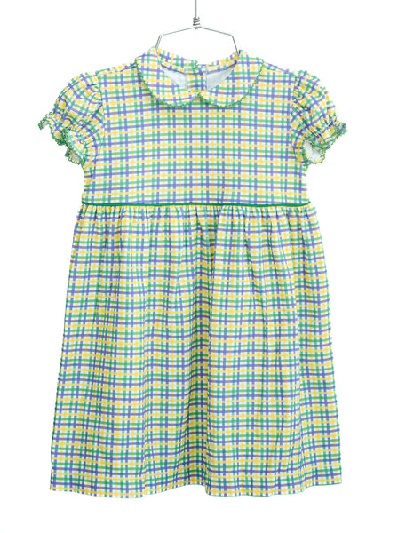 Celebrate in festive charm with the Mardi Gras Dress for Girls, made from soft 100% Pima cotton for comfort and lasting quality. This cheerful dress features a green, yellow, and purple plaid with delicate green piping, perfect for Mardi Gras parades, parties, and special events. Layer it with our Mardi Gras sweater for cooler days.
