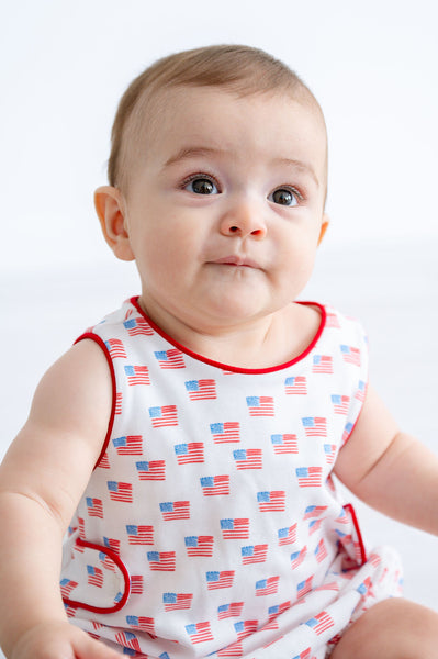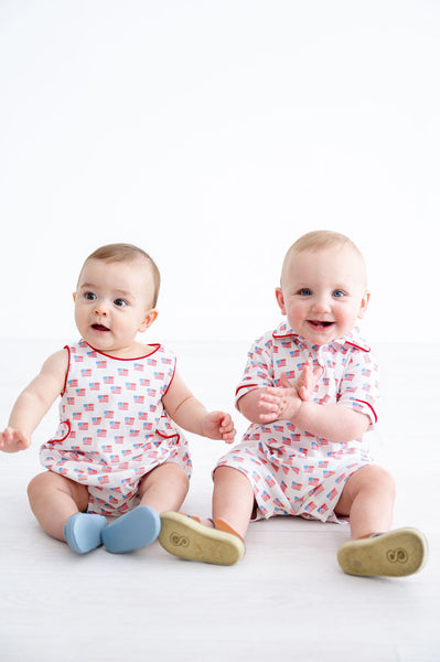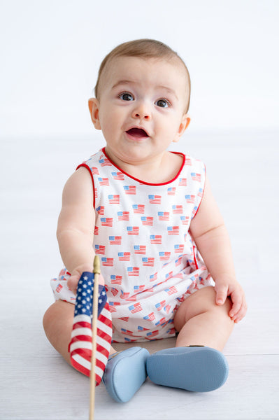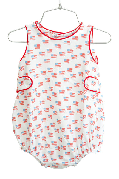 The Pima American Flag Bubble is a classic one-piece for baby boys, available in sizes NB through 2T. Made from 100% Pima cotton, it’s soft, lightweight, and comfortable for everyday wear.