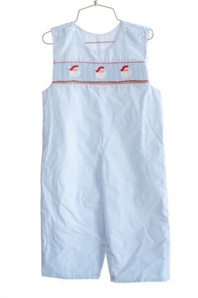 Timeless holiday charm for your little one! This smocked Blue Santa longall is perfect for Christmas gatherings, Santa visits, and festive family photos. Made from a soft blue gingham blend (45% polyester / 55% cotton), it features a hand-smocked panel of cheerful Santas across the chest for a classic holiday look. Add a crisp white Peter Pan collar shirt underneath to complete the outfit.